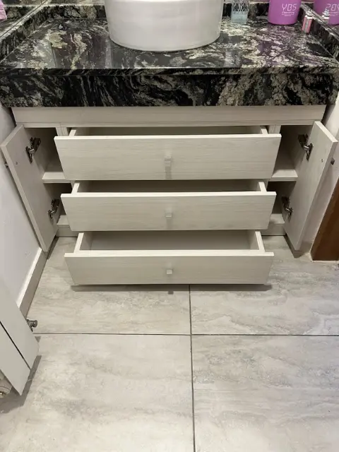 luminosidad y elegancia al baño. Sus cajones y compartimentos ofrecen organización